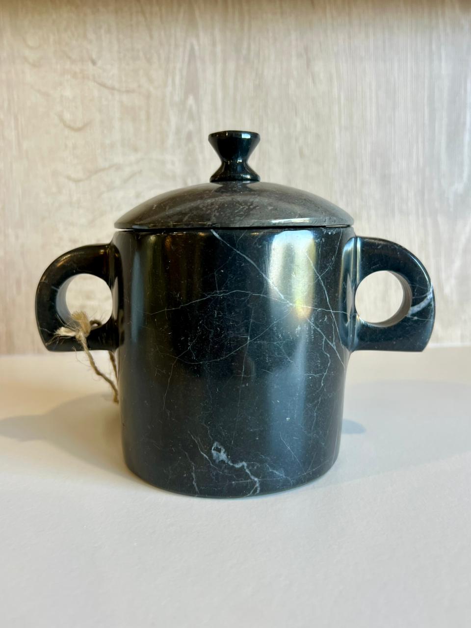 Pieza funcional y decorativa tallada en piedra natural, diseñada con tapa integrada para un uso práctico en cocina, comedor o cafetería. Disponible en Negro Querétaro. Su acabado pulido y su diseño limpio aportan un toque elegante y contemporáneo a cualquier espacio.